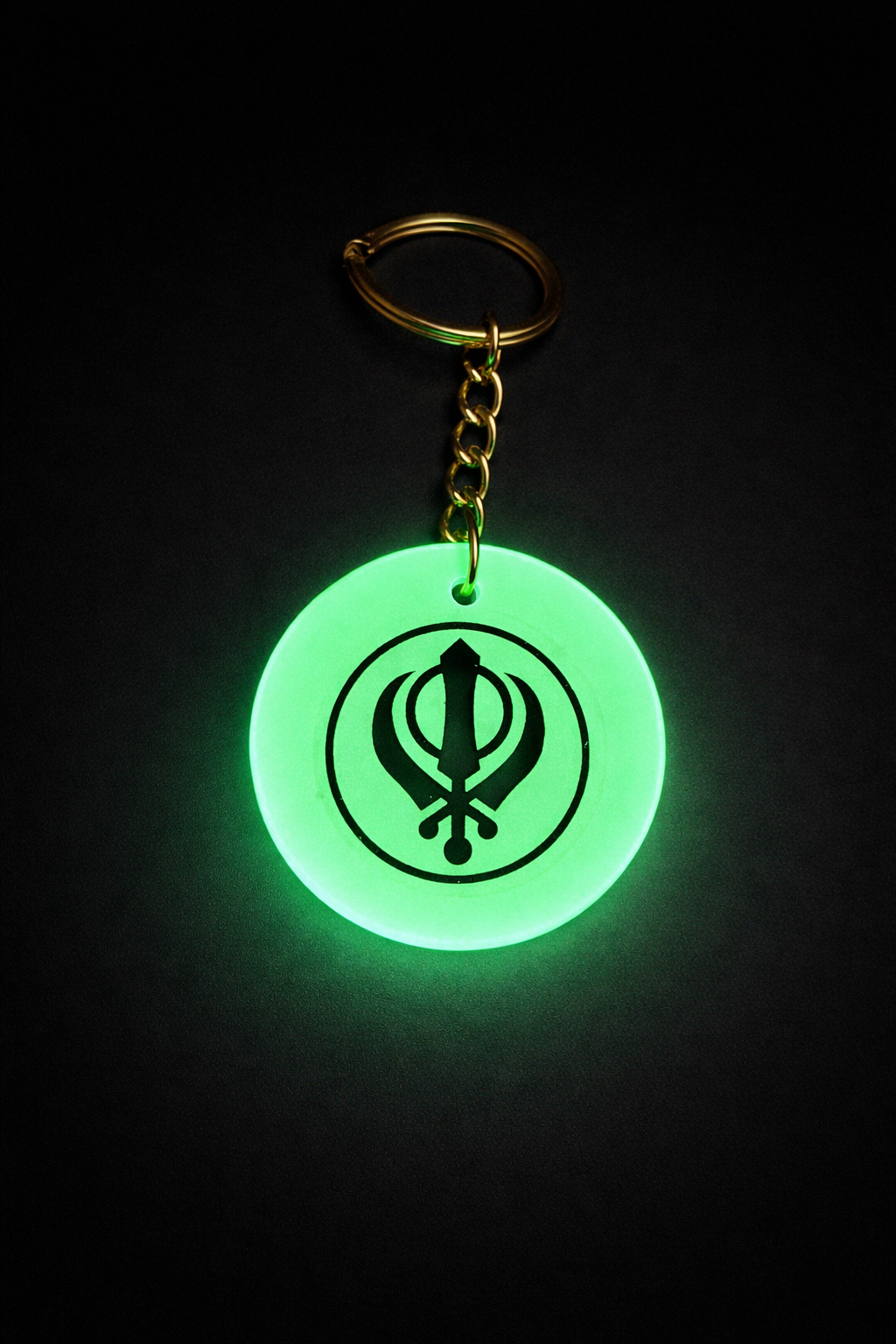 Crafted from premium glow material, the pendant charges in light and glows naturally without batteries. Its clean detailing and bright illumination make it perfect for night visibility while serving as a powerful symbol of Sikh heritage.